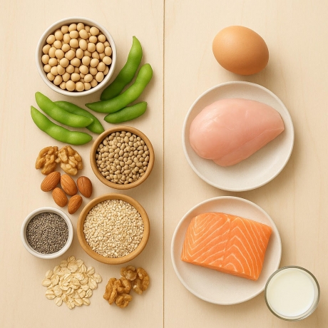 植物性蛋白質與動物性蛋白質各自擁有獨特的營養價值與健康效益,透過多樣化的植物蛋白來源(如黃豆、藜麥、堅果、種子等)