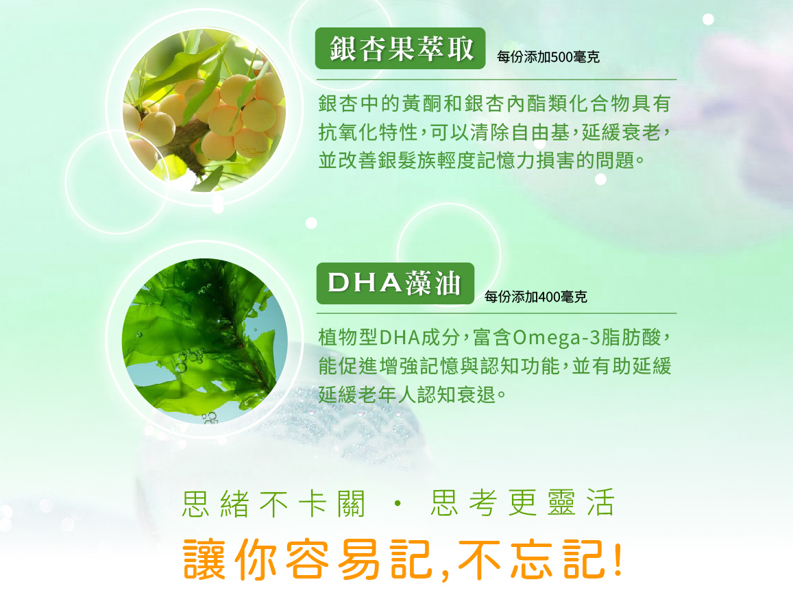 對抗健忘.用腦過度.忘東忘西,能保持思緒清晰,提升專注力.