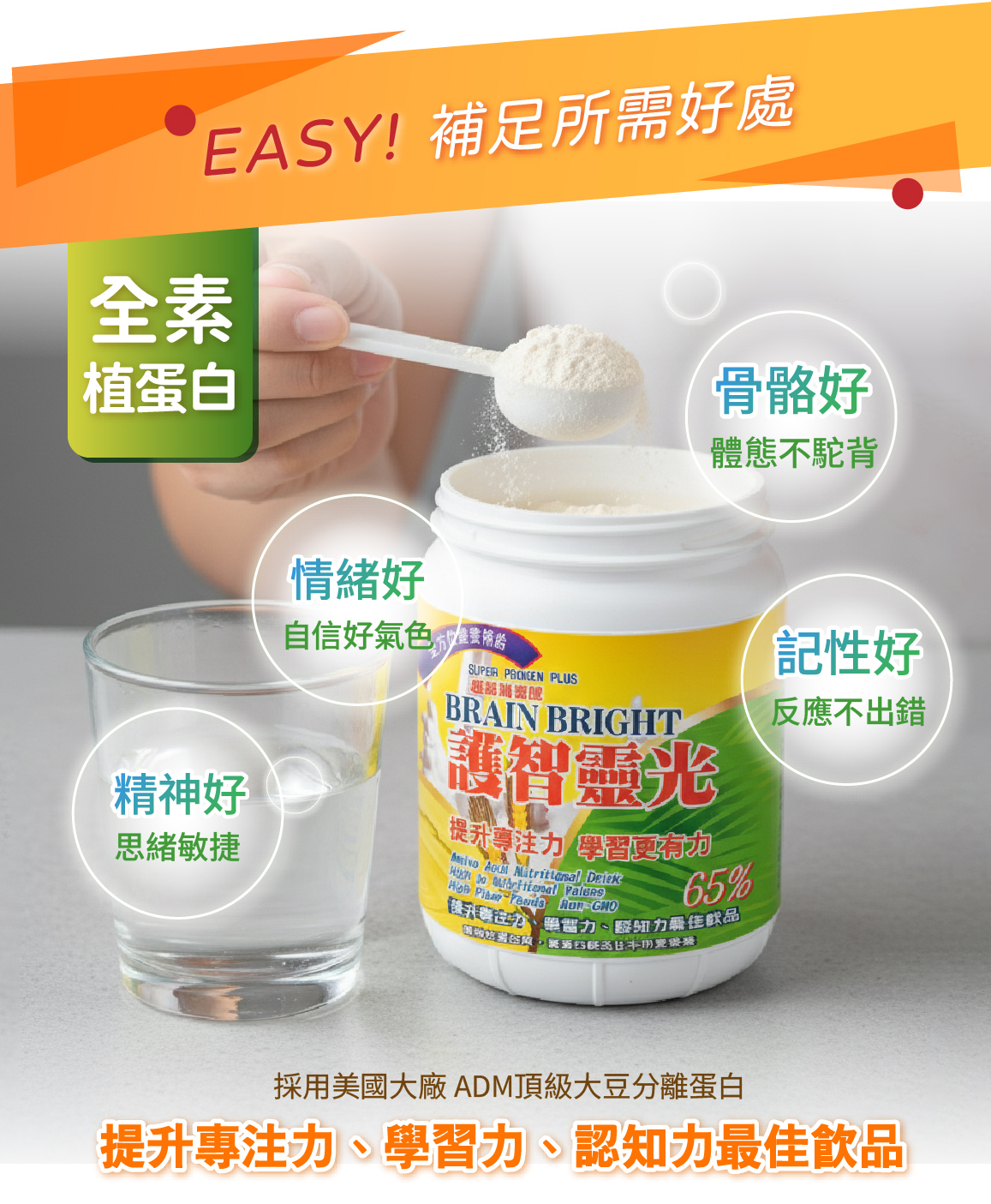 完整全方位胺基酸,滿足全家人一日所需的蛋白質。